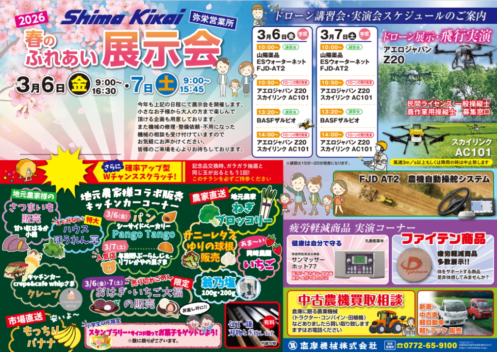 3月 13日(金)・ 14日(土)は【福知山エリア】【朝来エリア】 にて農機展示会を実施します。